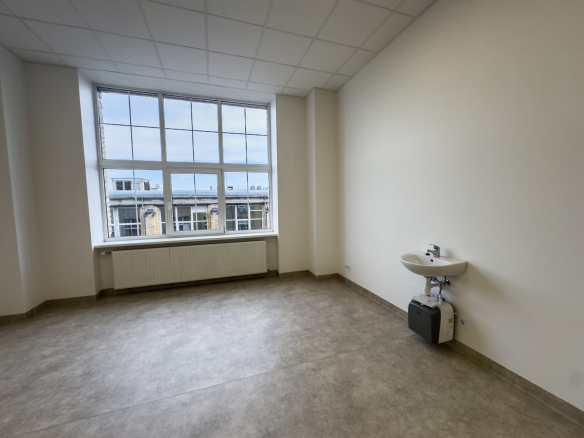 Telpai ir veikta apdare, un tā pielāgota ērtai lietošanai — nomas cenā iekļauta pilna apdare. Telpā ir liels plastmasas logs, griestu augstums ~3–3,5 m, kā arī izbūvēta izlietne.