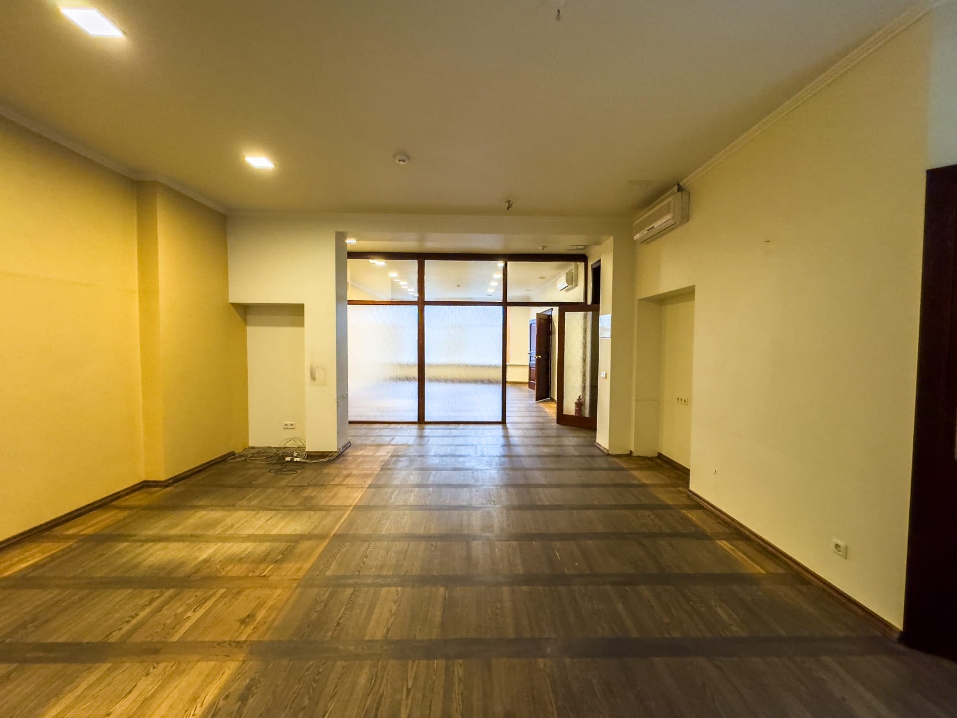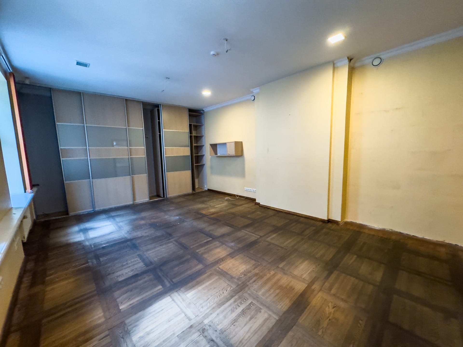 Telpā ir gatava apdare, PVC logi un griestu augstums ir vidēji 3 metri. Ir pieejami sānmezgli — koplietošanas.