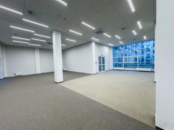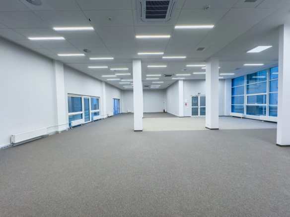 Plānojumu veido atvērtā tipa darba zona ar iespēju ierīkot virtuvi – telpā jau paredzēta vieta tās izbūvei. Birojam ir trīs franču balkoni.