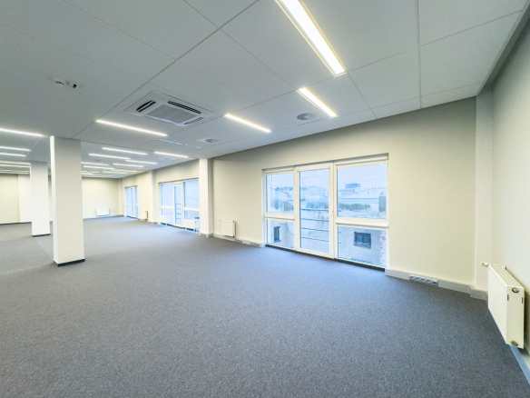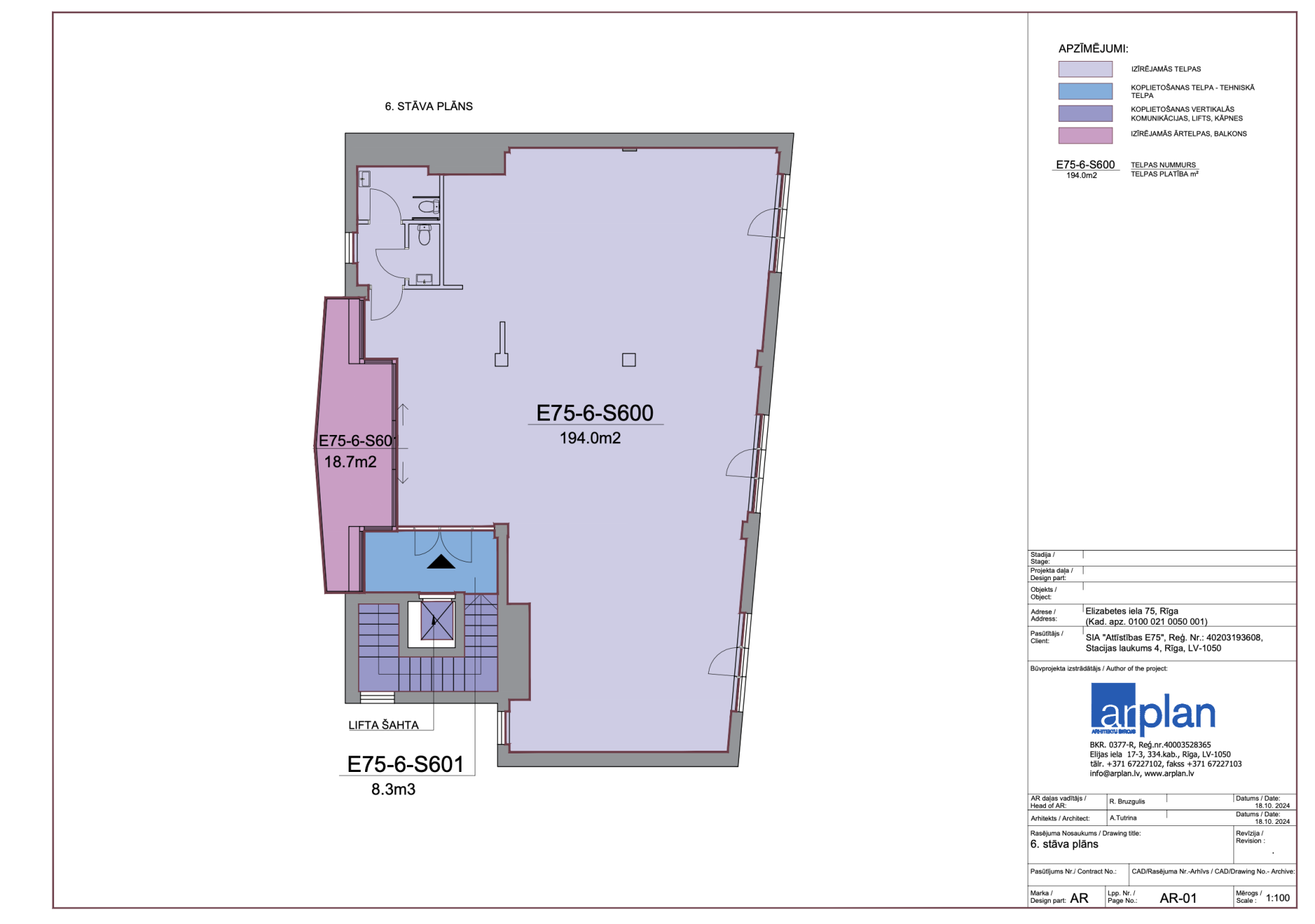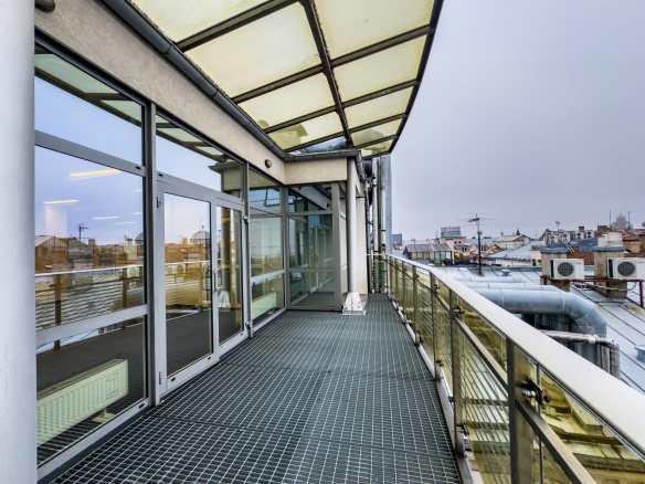 Plānojumu veido atvērtā tipa darba zona ar iespēju ierīkot virtuvi – telpā jau paredzēta vieta tās izbūvei. Birojam ir arī 18,7 m² plaša terase un trīs franču balkoni.