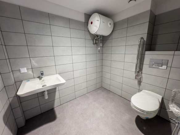 Telpā ir gatava apdare, PVC logi un griestu augstums vidēji 3 metri. Pieejami divi sānmezgli, no kuriem viens pielāgots cilvēkiem ar kustību traucējumiem.