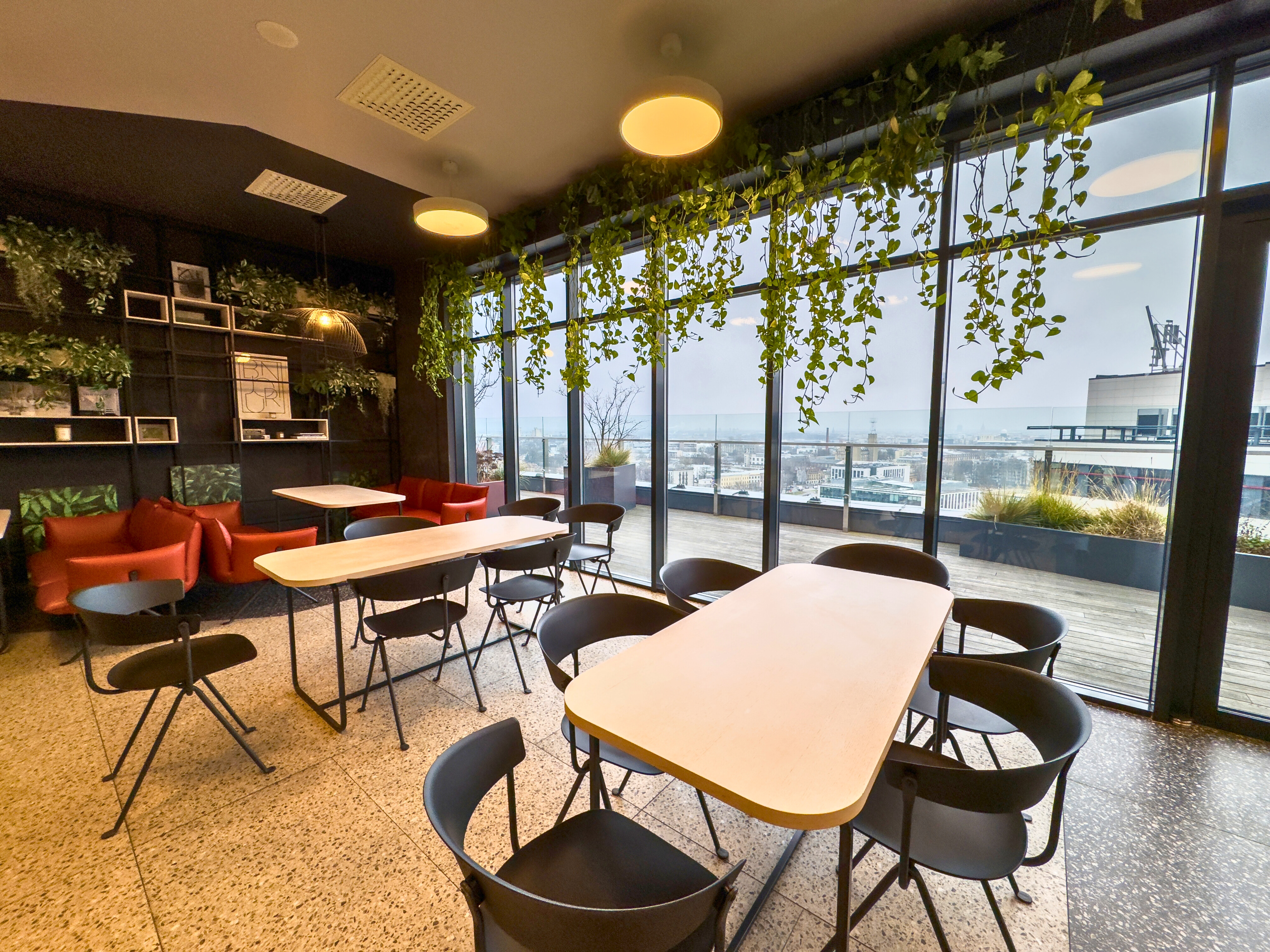 Pieejami vairāki ēdinātāji, pārtikas veikals, aptieka, sporta klubs, ķīmiskā tīrītava un citas pārdomātas ērtības.