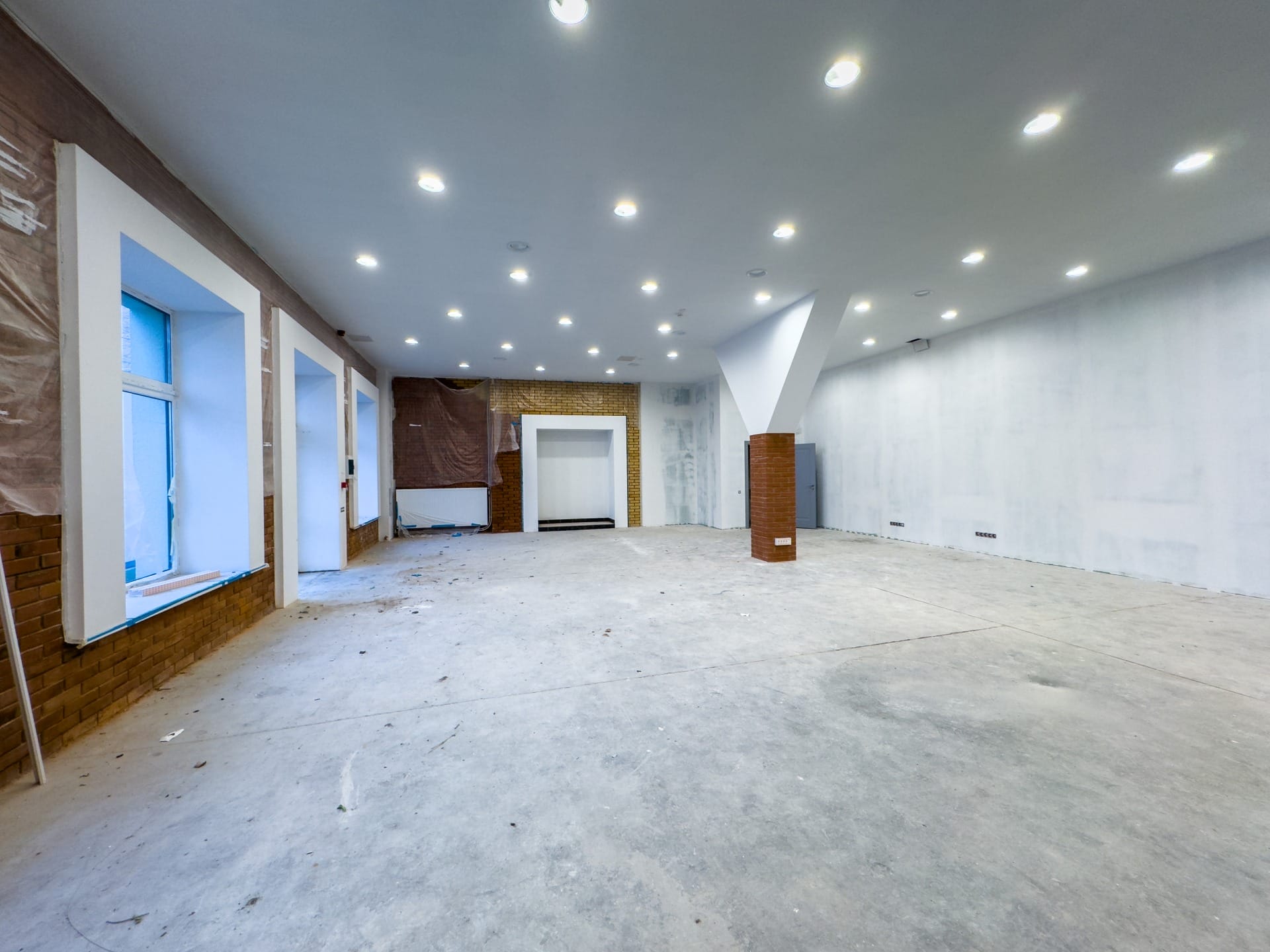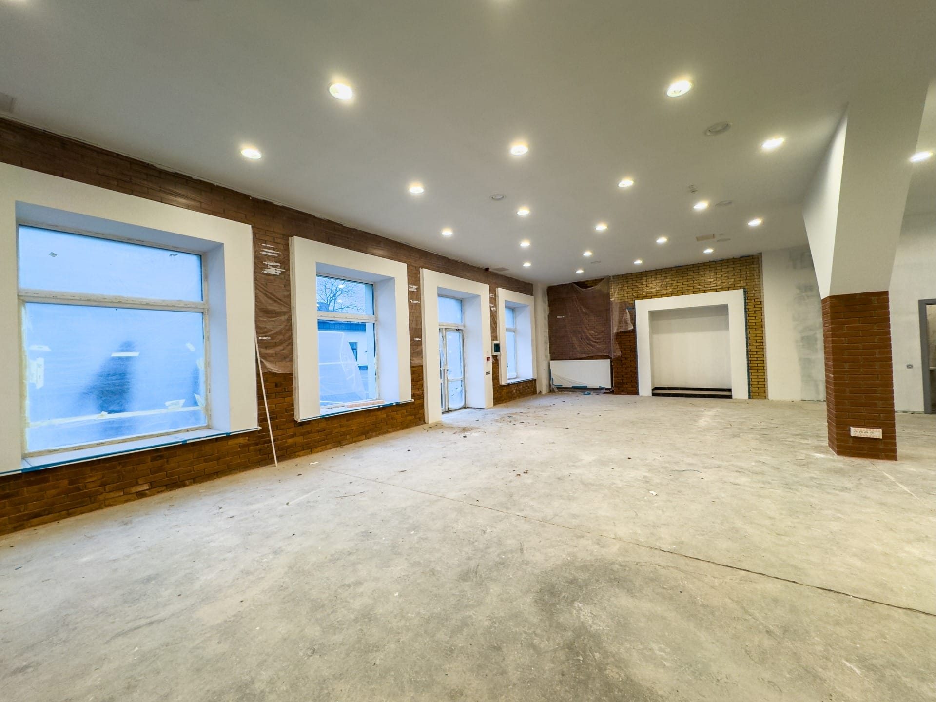 Atrodas 1. stāvā. Sienas sagatavotas krāsošanai, betona grīdas, lieli plaši logi uz iekšpagalmu, pavisam kopā divass ieejas, ir pieejami 2 sānmezgli, augsti griesti.