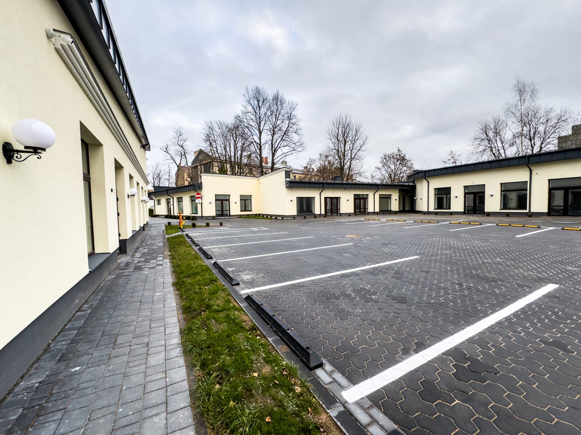 Ēkas fasāde ir renovēta un mūsdienīgi iekārtota. Ēkai ir gāzes apkure un ventilācijas sistēma. Pieejama autostāvvieta — nomniekiem par 60 EUR mēnesī, klientiem par 1 EUR stundā.