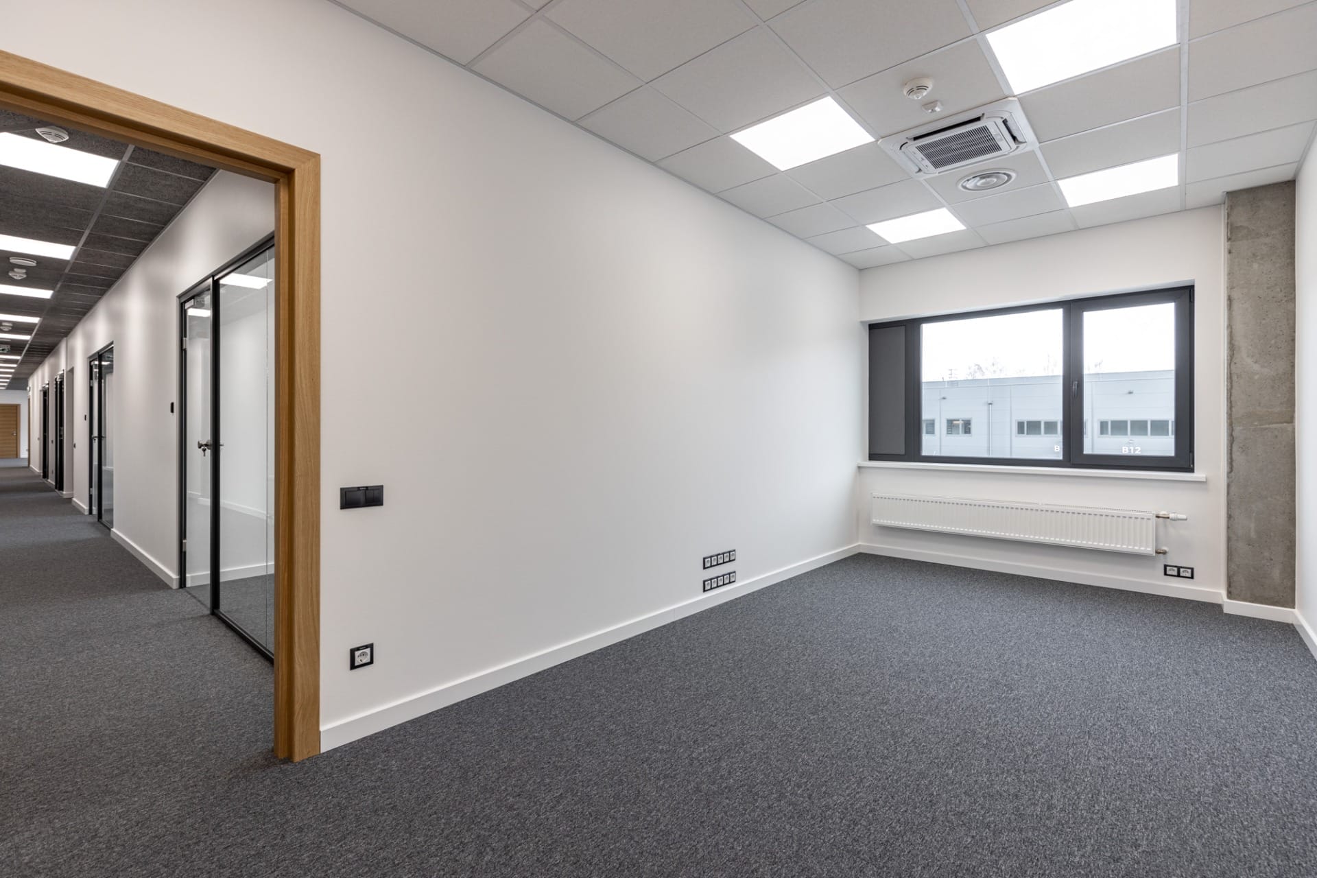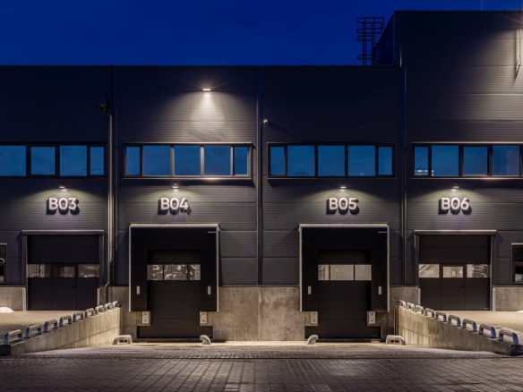 Dabiskā apgaismojuma virsgaismas 2% platībā no jumta un LED apgaismojums (vismaz 300 lx noliktavās, vismaz 500 lx birojos),
