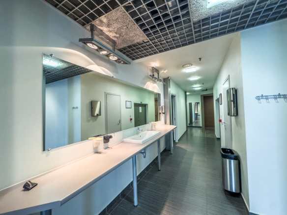 Tirdzniecības telpas atrodas ēkas 4. stāvā un ir lieliski piemērotas sporta zāles vajadzībām. Bildēs redzamais inventārs un aprīkojums nav iekļauts telpu nomas piedāvājumā. Telpās ir gatava apdare. Ir pieejamas divas plašas ģērbtuves ar dušām (sieviešu un vīriešu), kā arī kopējā spa zona ar pirti un diviem džakuzi.