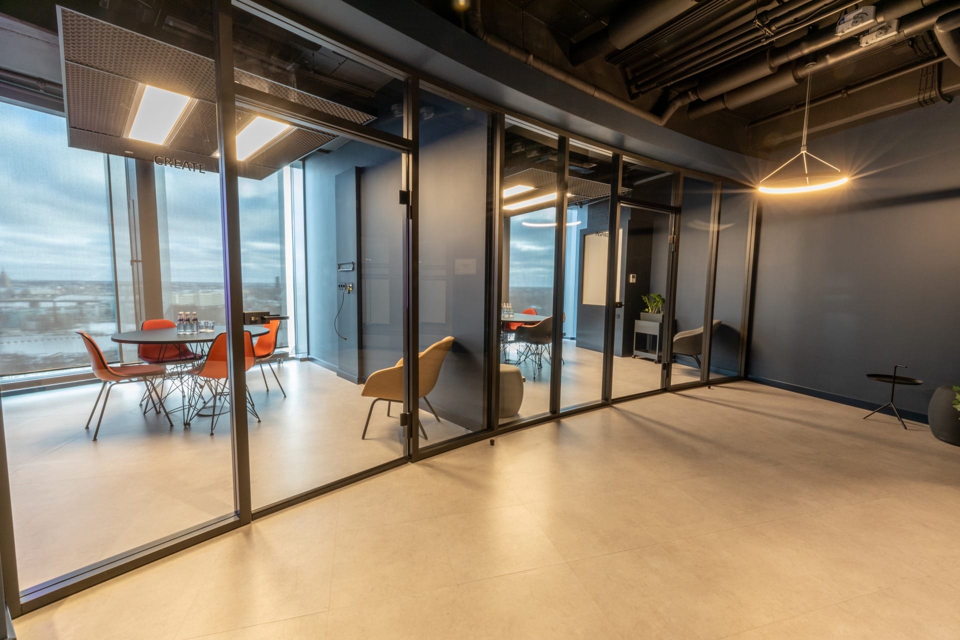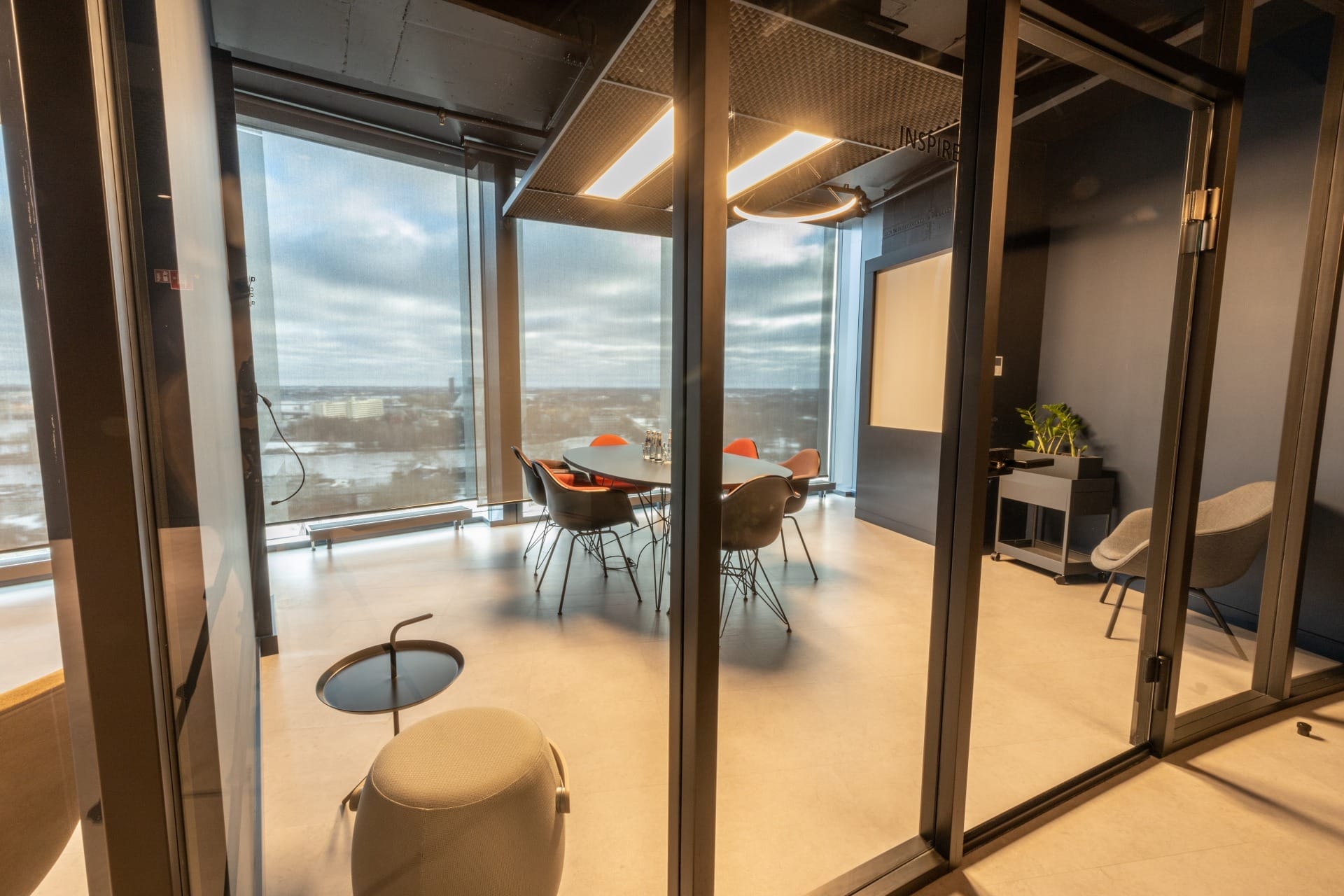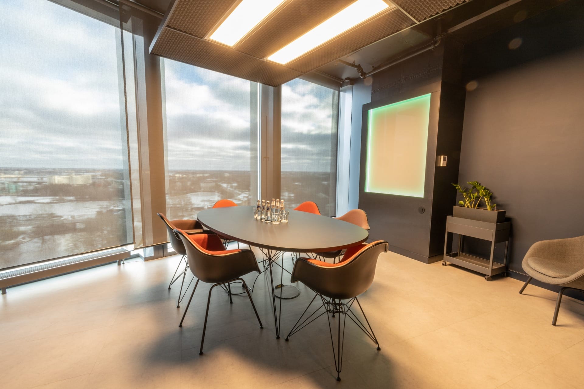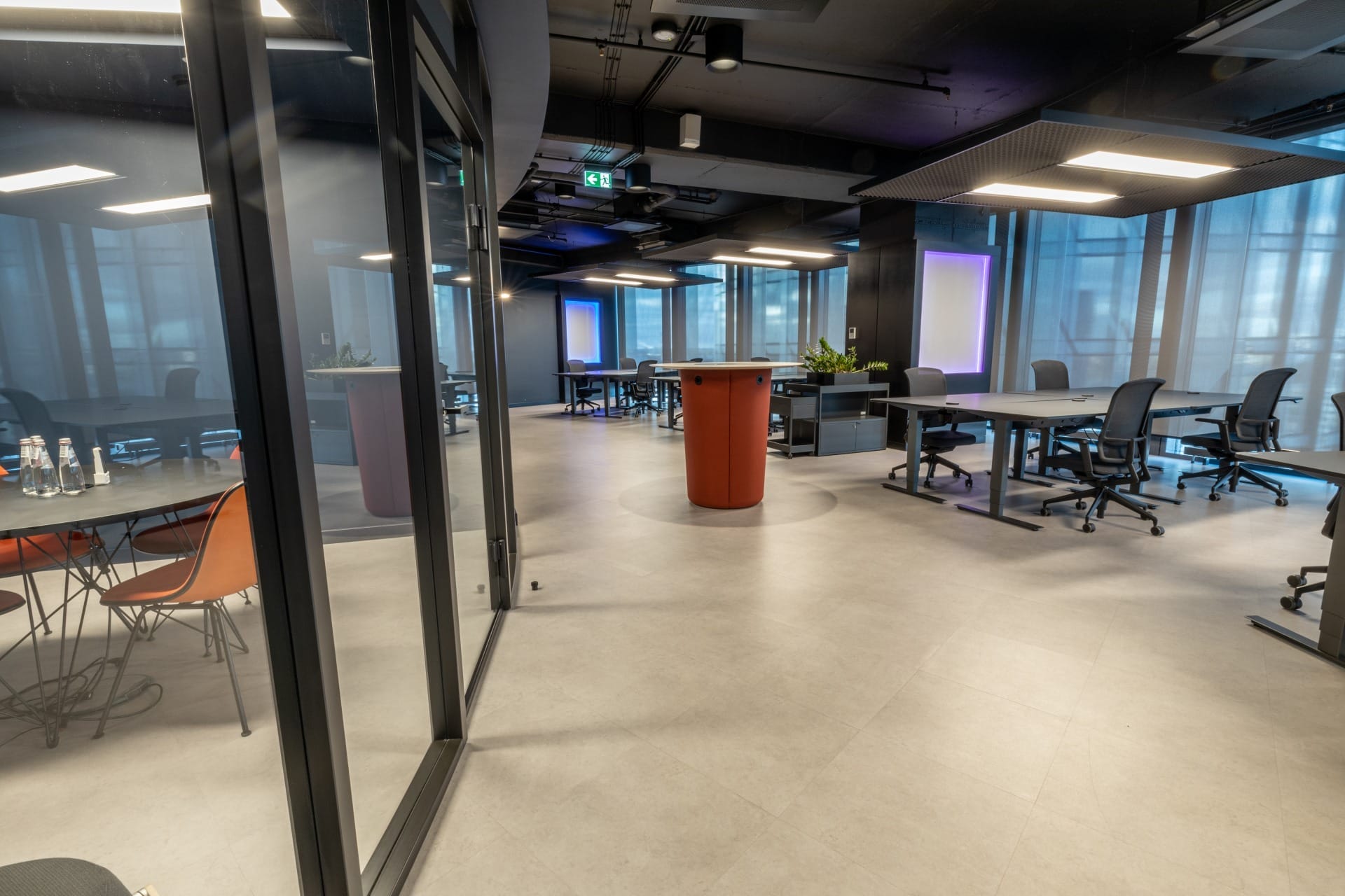 Birojs, kuram ir 393 m² platība, atrodas 11. stāvā un piedāvā skatu uz Vecrīgu. Telpas ir pilnībā mēbelētas un gatavas darbam. Tajā ir trīs atsevišķi kabineti, plašs open space ar ofisa galdiem, divas tualetes un viena liela virtuve.