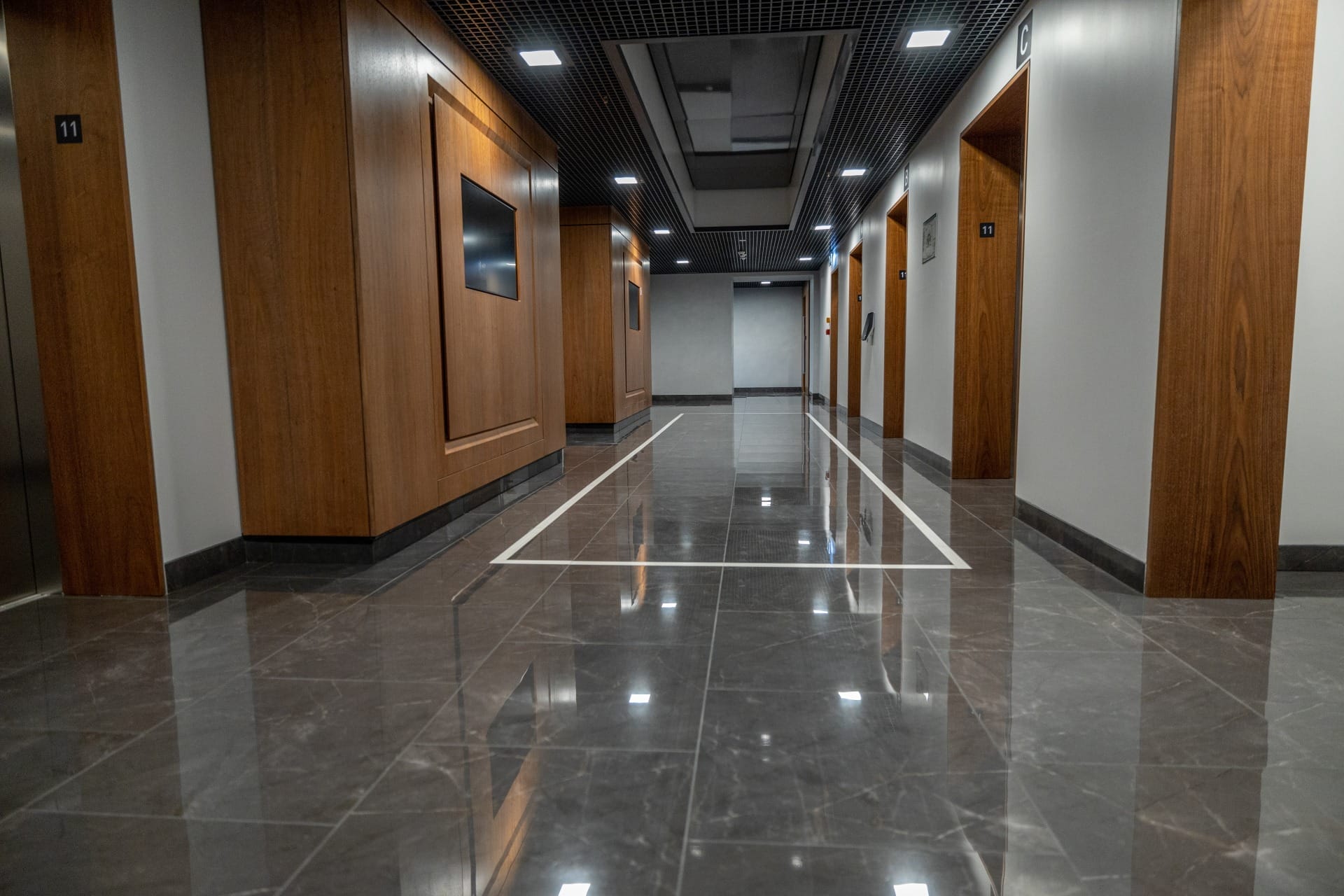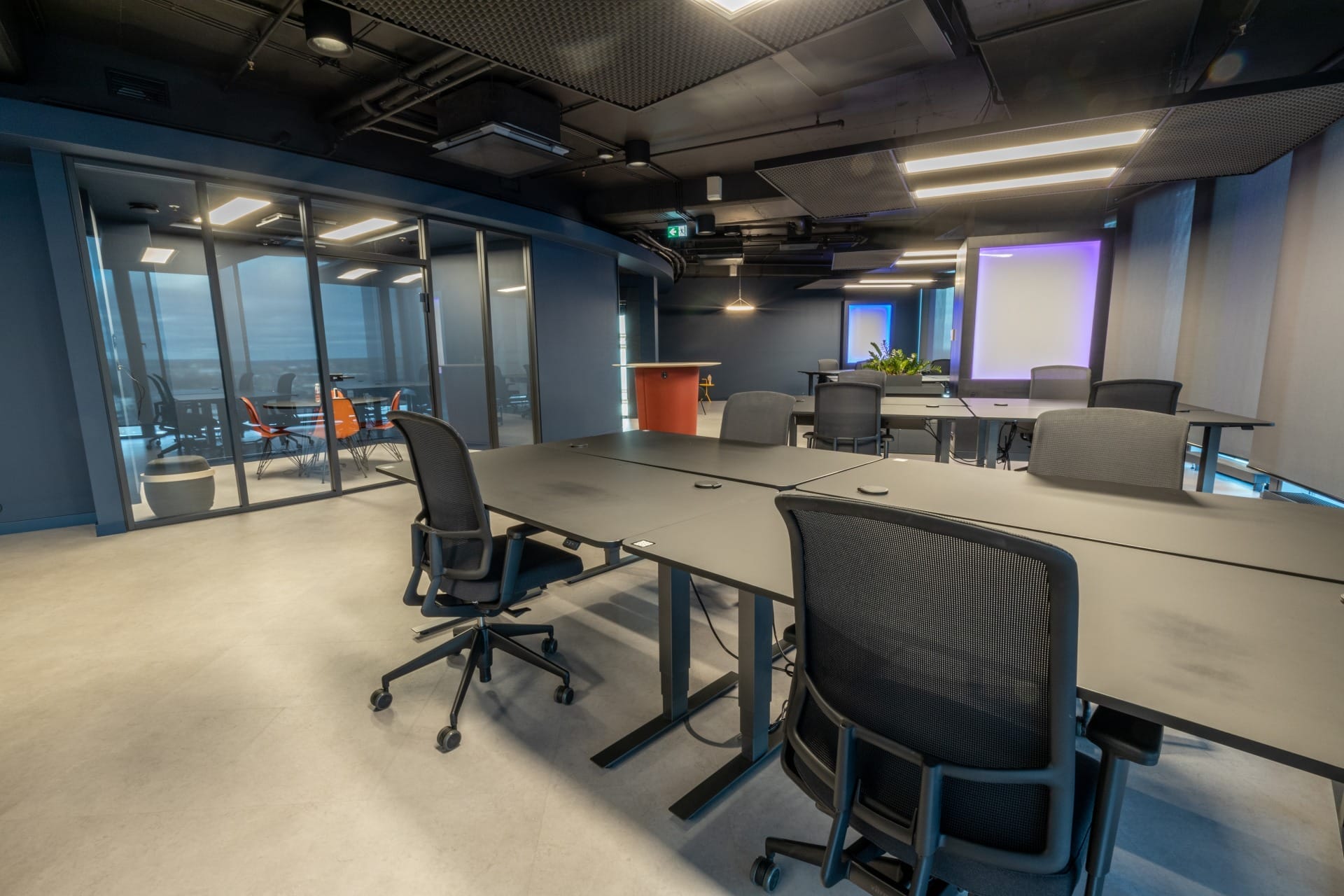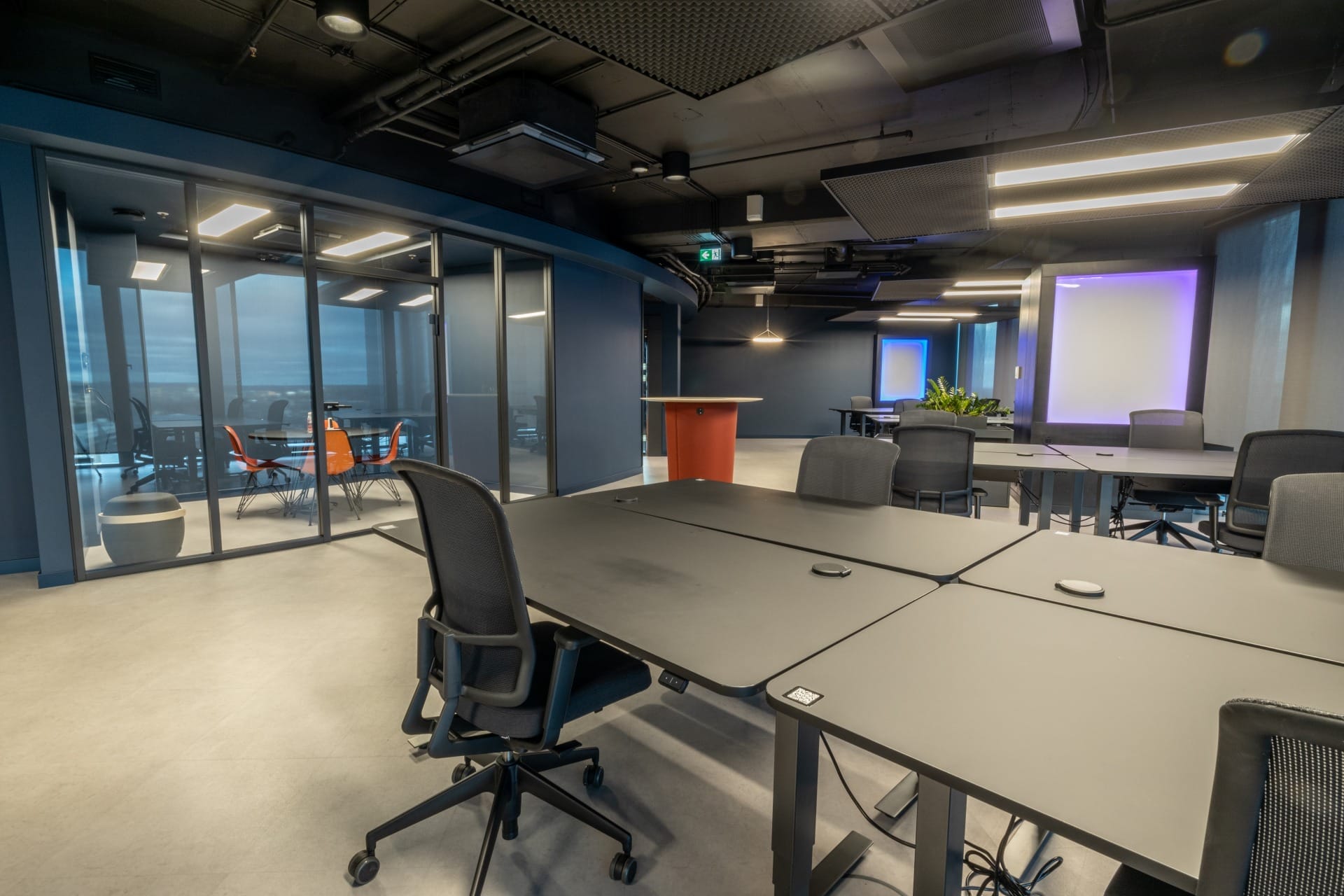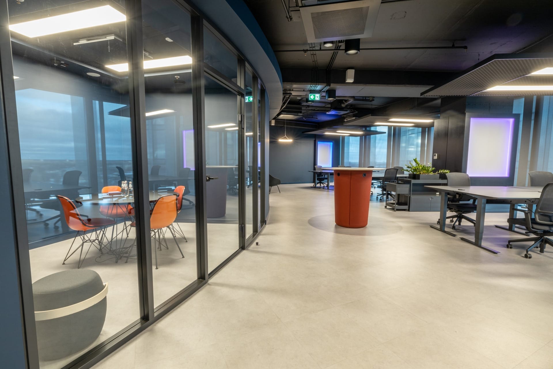 Birojs, kuram ir 393 m² platība, atrodas 11. stāvā un piedāvā skatu uz Vecrīgu. Telpas ir pilnībā mēbelētas un gatavas darbam. Tajā ir trīs atsevišķi kabineti, plašs open space ar ofisa galdiem, divas tualetes un viena liela virtuve.