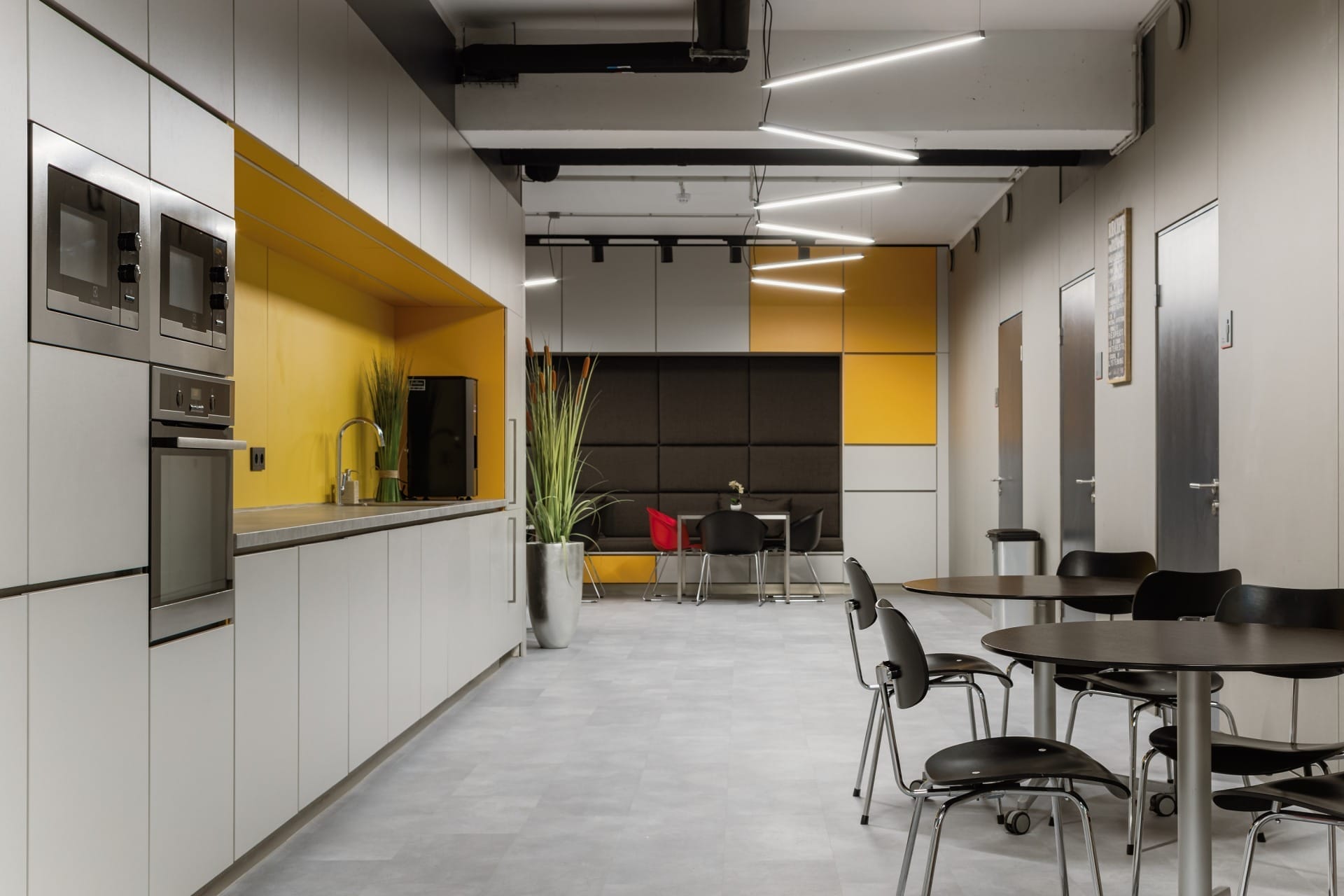 Telpā ir gatava apdare, lieli logi, un griestu augstums ir vidēji 3 metri. Ir pieejami divi sānmezgli.