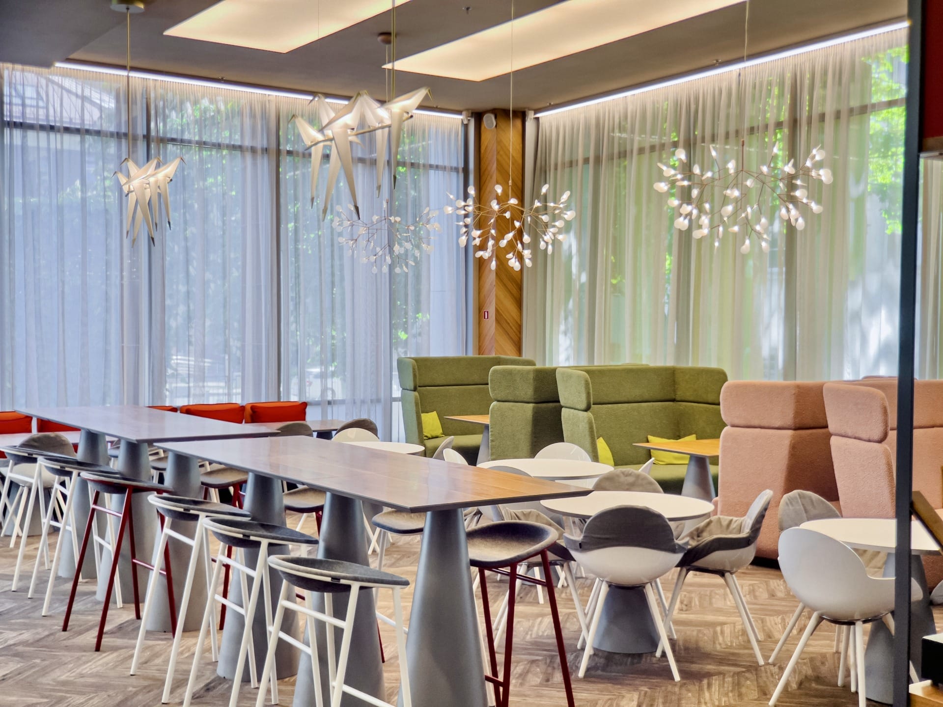 Papildus ērtībās ietilpst dušas un skapīši ēkas pagrabstāvā, ēkas 1. stāvā pusdienu restorāns, un iespējams izmantot aprīkotas konferenču telpas ar ietilpību līdz 250 cilvēkiem.