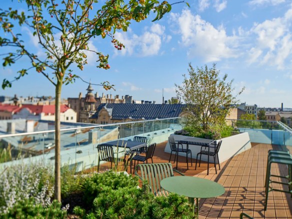 Iznomā modernas biroja telpas 520 m² platībā, izvietotas 5. un 6. stāvā, ar 91 m² privātu terasi. Telpām ir elastīgs, pielāgojams plānojums, gaišas telpas ar lieliem logiem un kvalitatīvi apdares risinājumi.