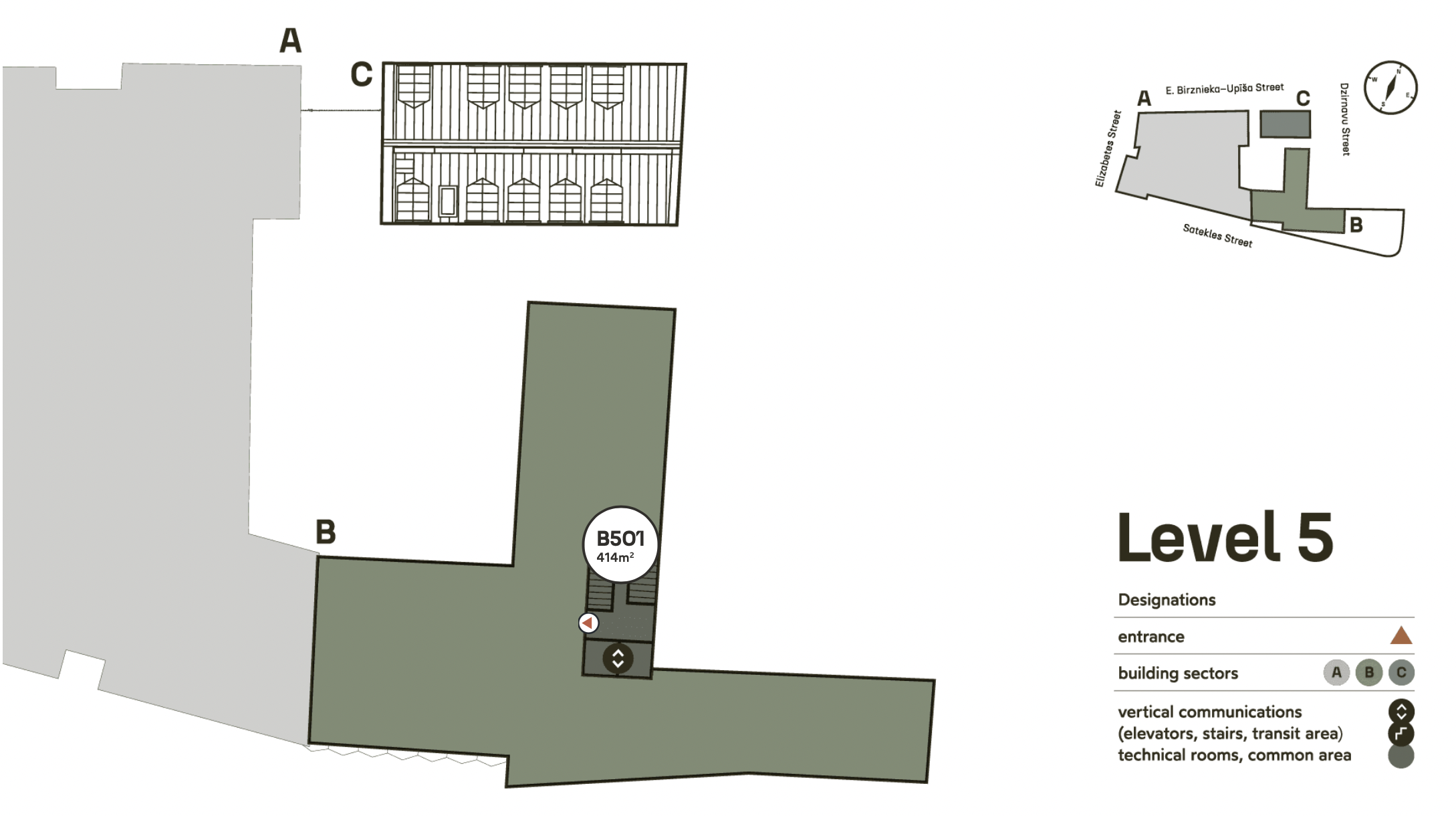 Birojs atrodas ilgtspējīgajā Satekles Biznesa centrā, kas ieguvis BREEAM Outstanding sertifikātu. Pieejama mūsdienīga klimata kontrole, ventilācija, kondicionēšana un drošības sistēmas. Logi vērsti uz Satekles ielu, iekšpagalmu un terasi.