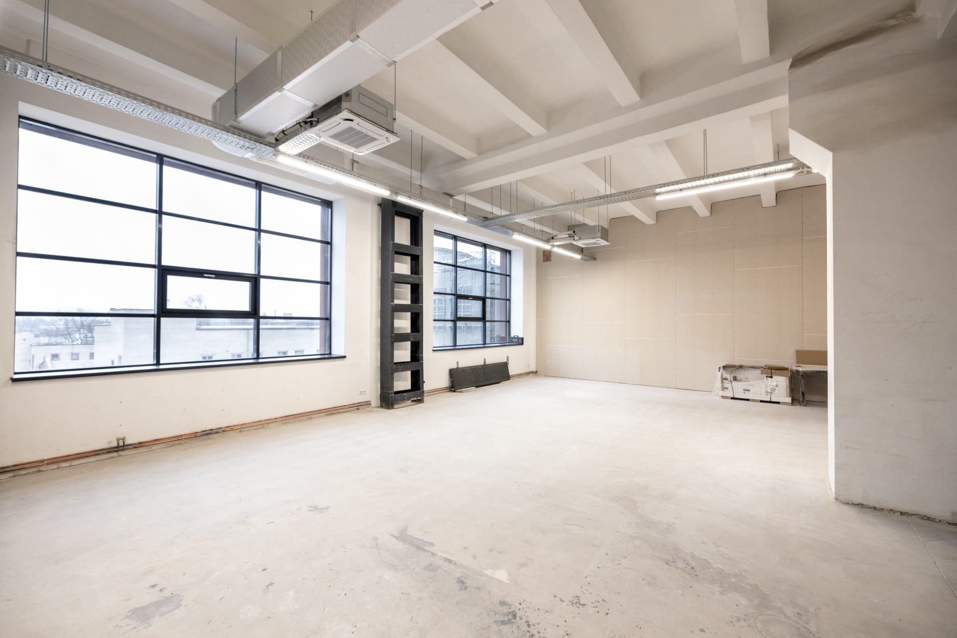 Birojs atrodas 2. stāvā. Telpās ir pelākā apdare, un griestu augstums ir vidēji 3 metri.